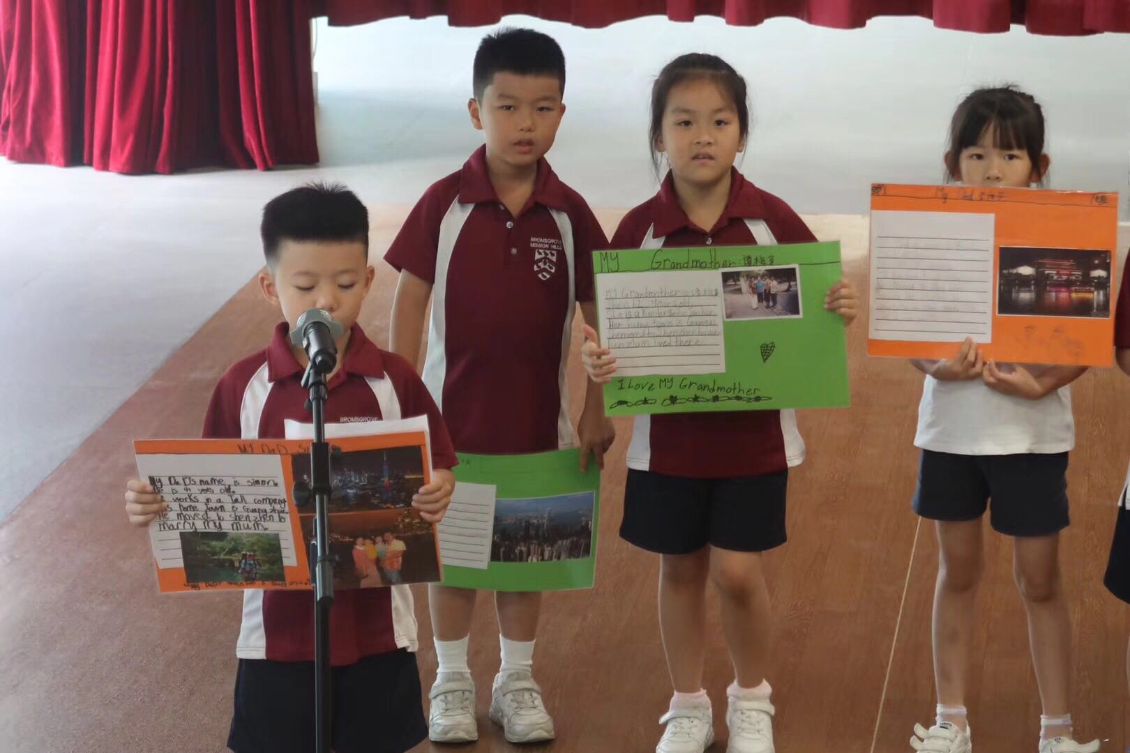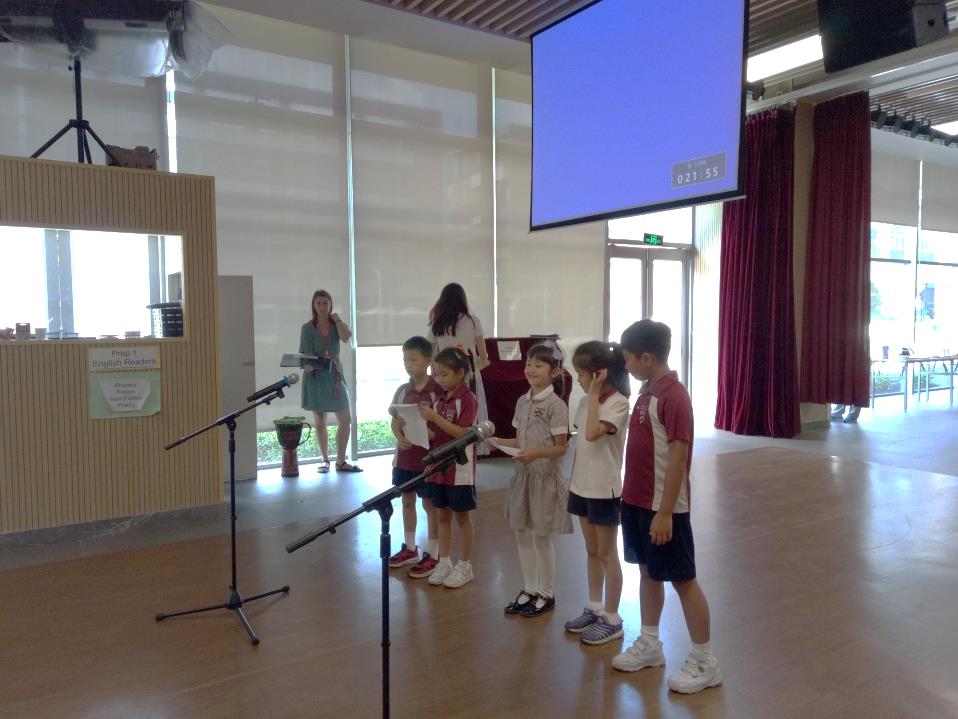 一年级的学生为家长们主持了一场咖啡晨会。首先,学生大使们为家长们介绍了晨会的安排。今天的晨会主要有两个部分。第一部分将会是中文的朗诵会。第二部分是探究单元“从这里到那里”的学习成果分享。这个单元的主题是旅行。然后,孩子们用自己的声音和动作,以及作品,为家长展示了在课堂所学的知识,如何通过探究学习乘法,如何学习语言,如何学习艺术等。