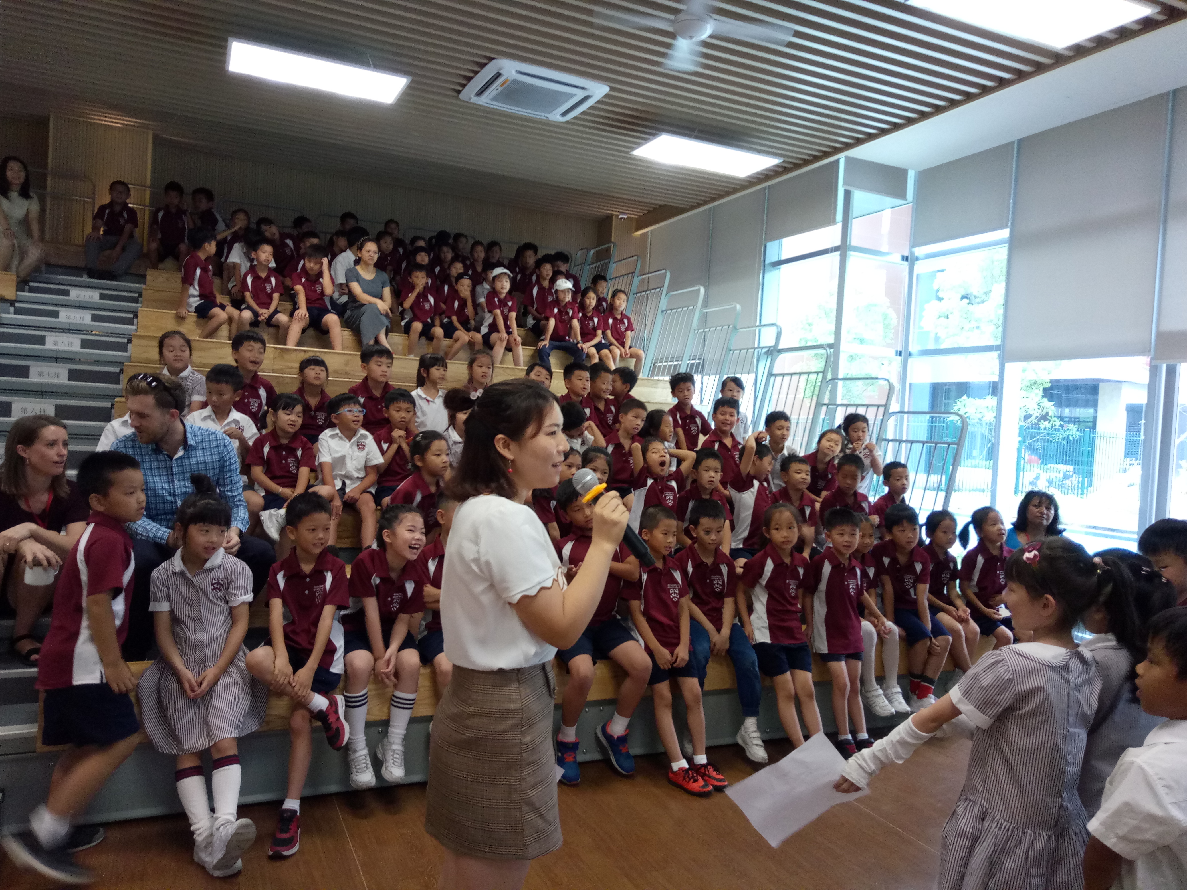 每个星期一早上都是小学部集会的日子,这时,孩子们将有机会与其他班级或年级的同学们一起分享所学的知识,并因为自己在仁义礼智信等方面的表现,获得老师的表彰。